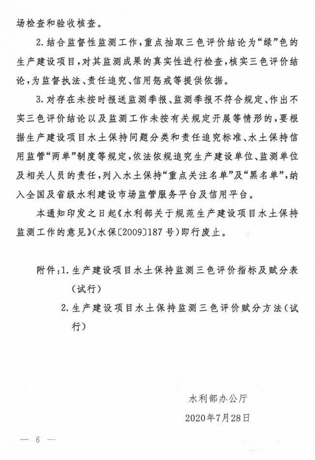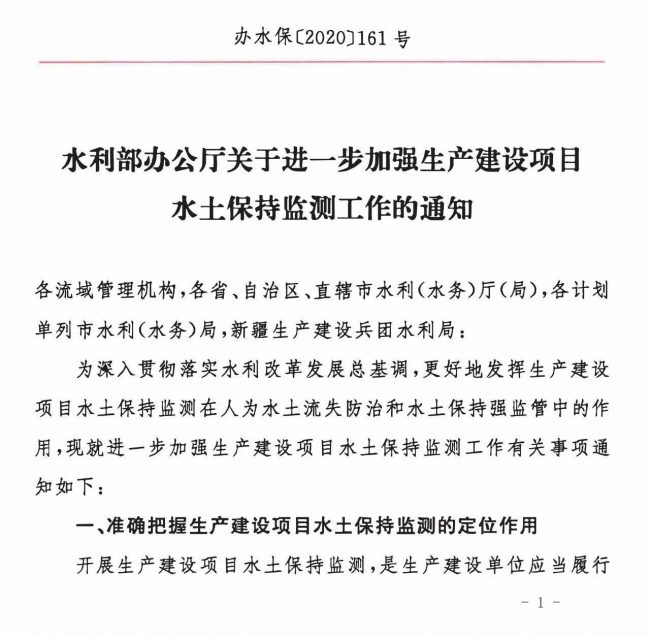 水利部辦公廳關于進一步加強生產建設項目水土保持監測工作的通知(辦水保〔2020〕161號)