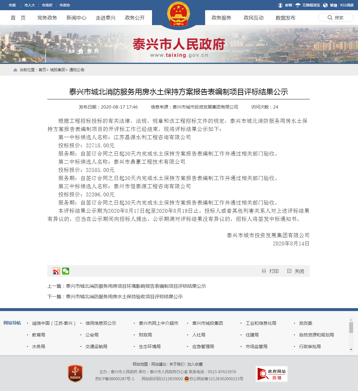 公司中標(biāo)泰興市城北消防服務(wù)用房水土保持方案報告表編制項(xiàng)目